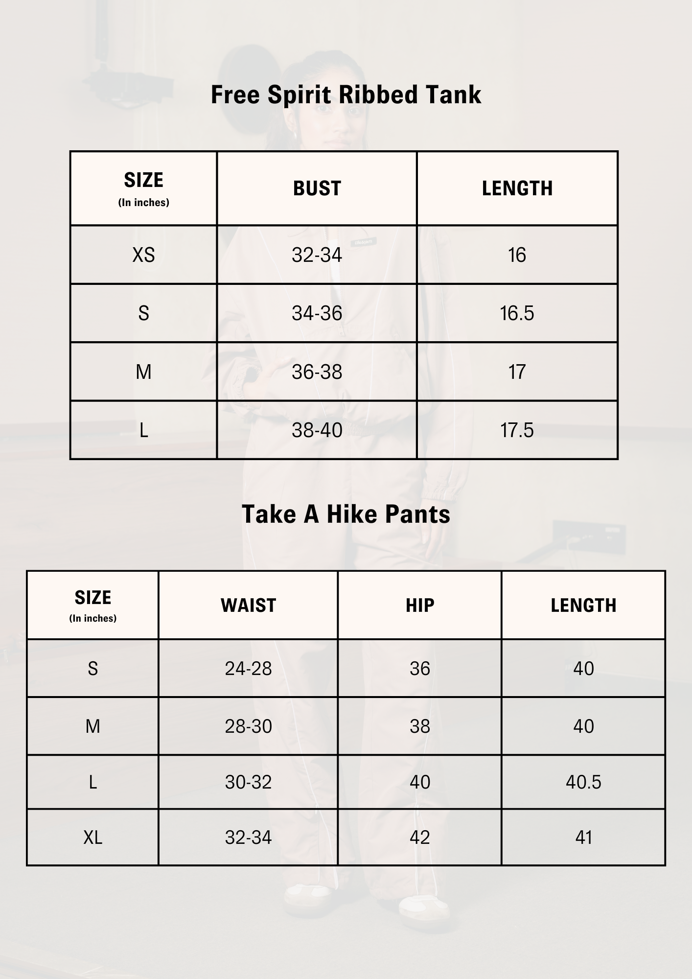 The tank is made from a high-stretch, soft, ribbed cotton blend, designed to be cozy and comfortable for lounging. The Take A Hike Pants are crafted from Cloud Peached Polyester, a soft, water-resistant fabric that’s ideal for all-weather wear.