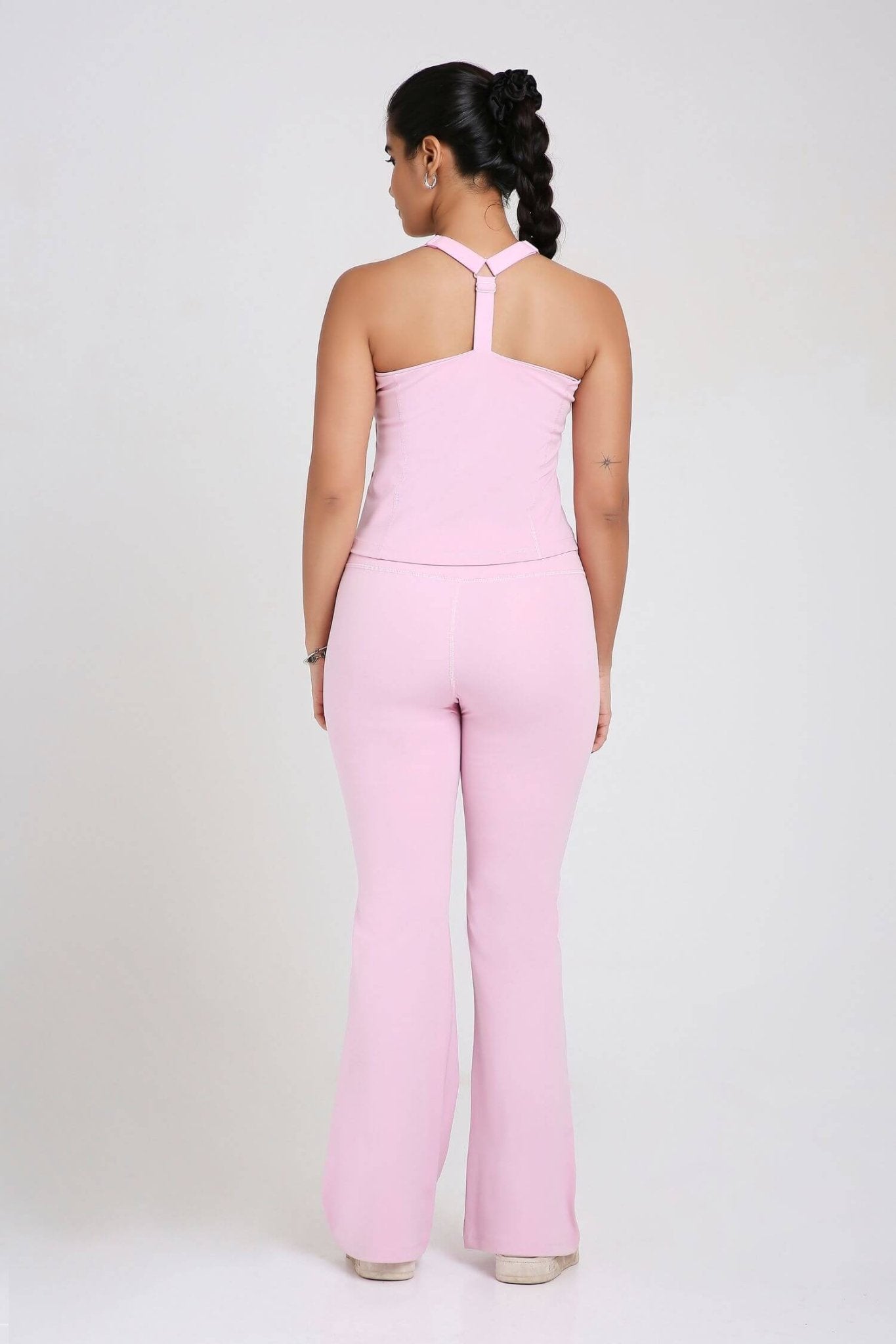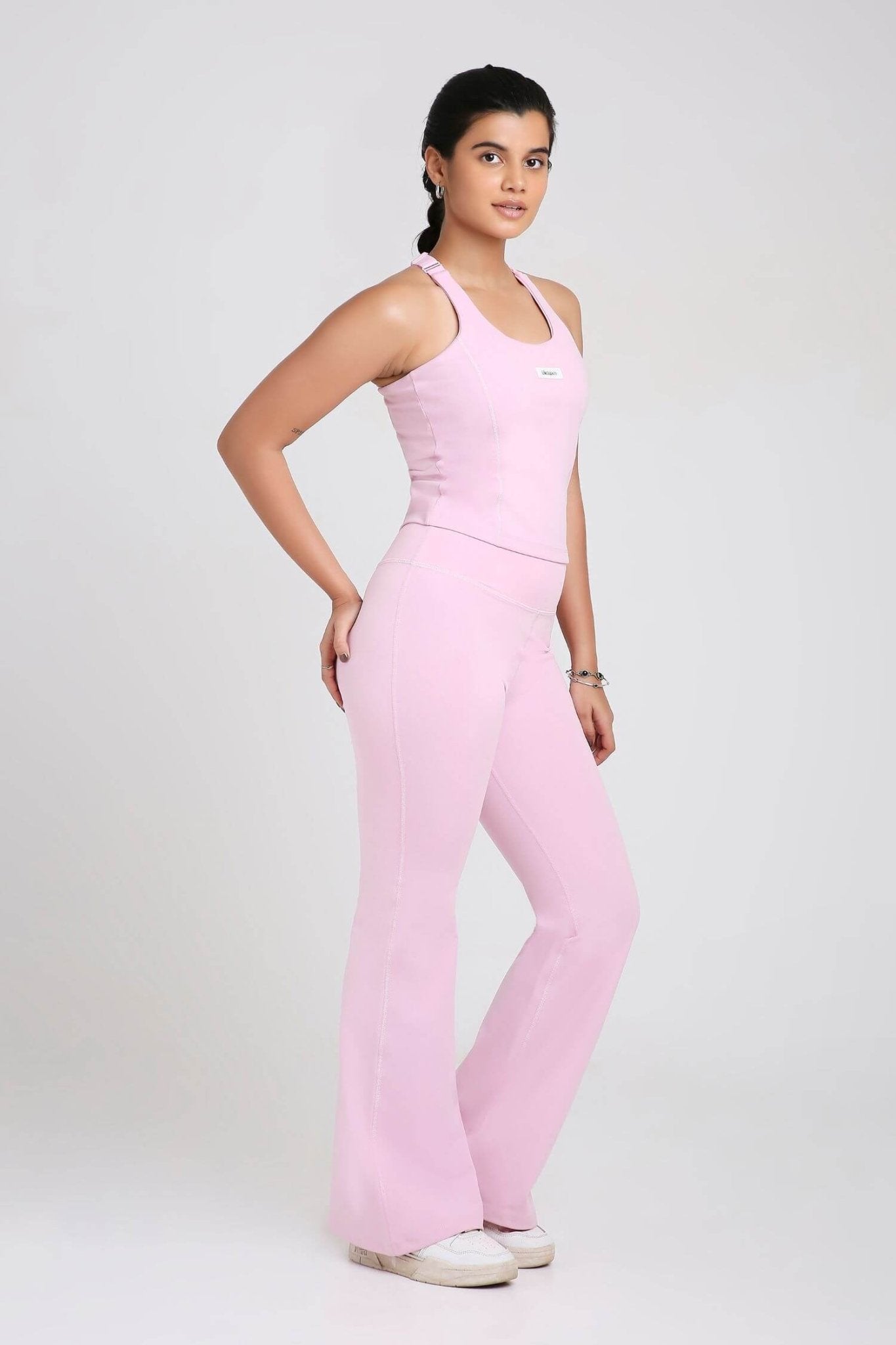 Co-ord Set: Good Girl Code Sports Bra & Flare Pants in Cotton Candy