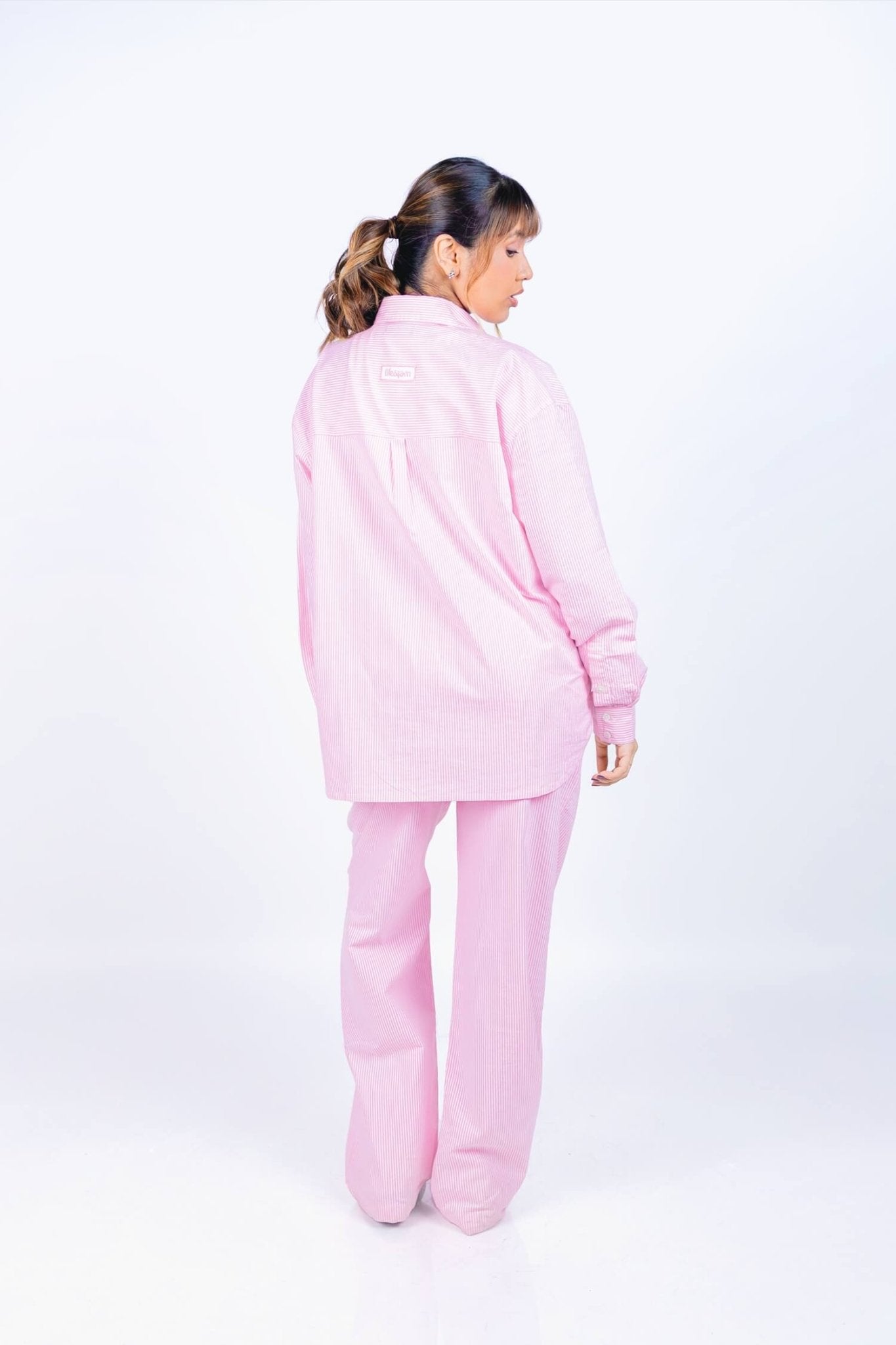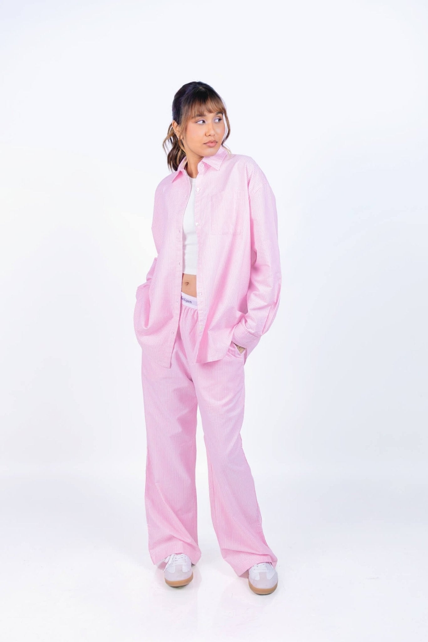 Co-ord Set: Throwover Shirt & Pants in Strippy Pink