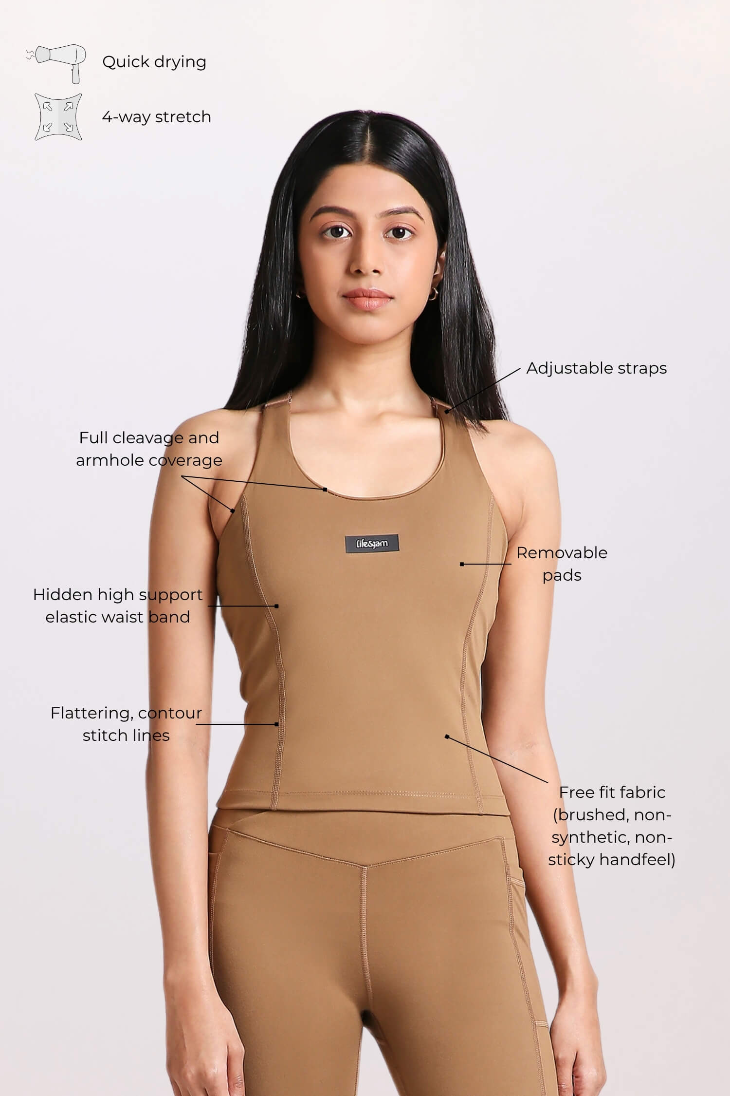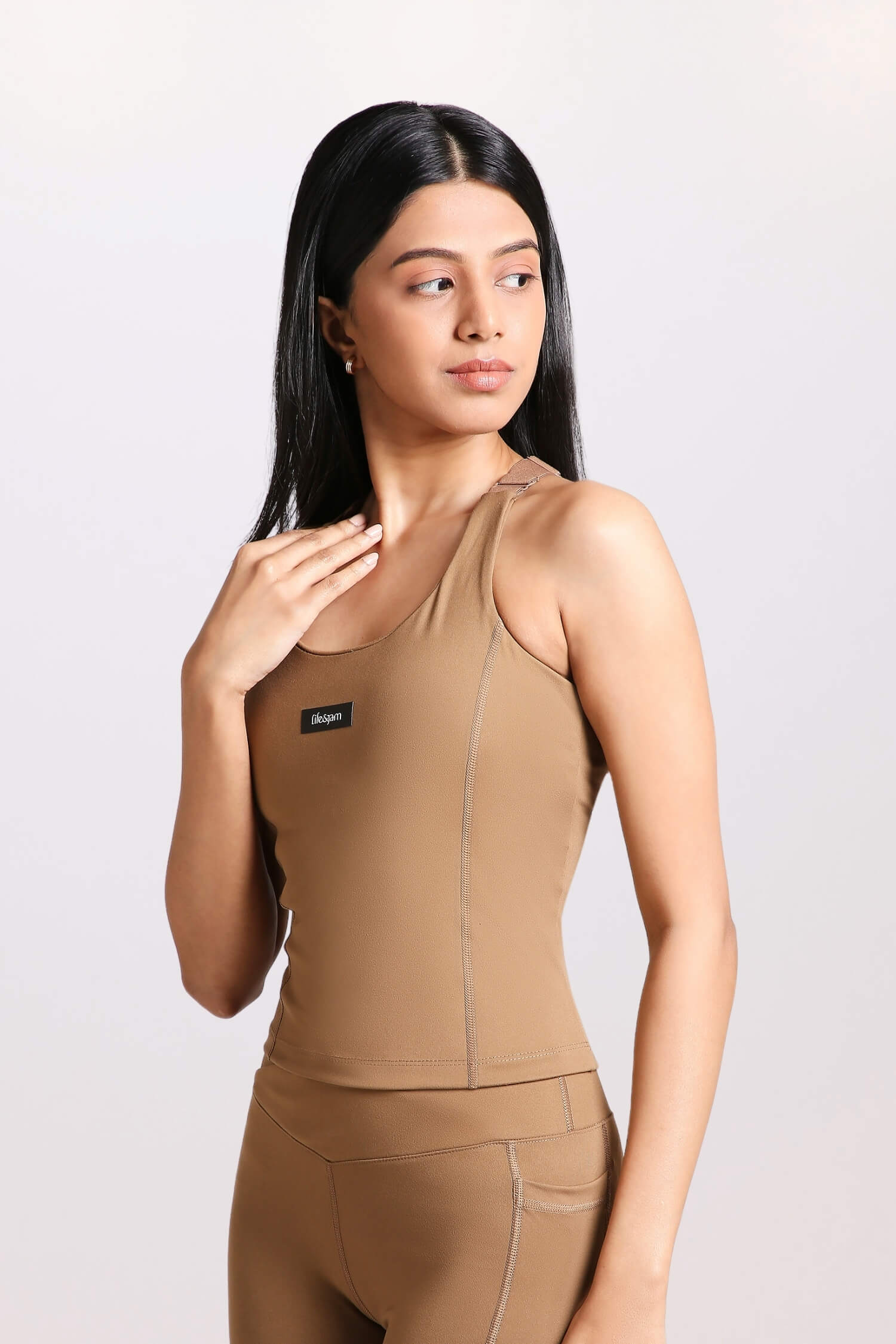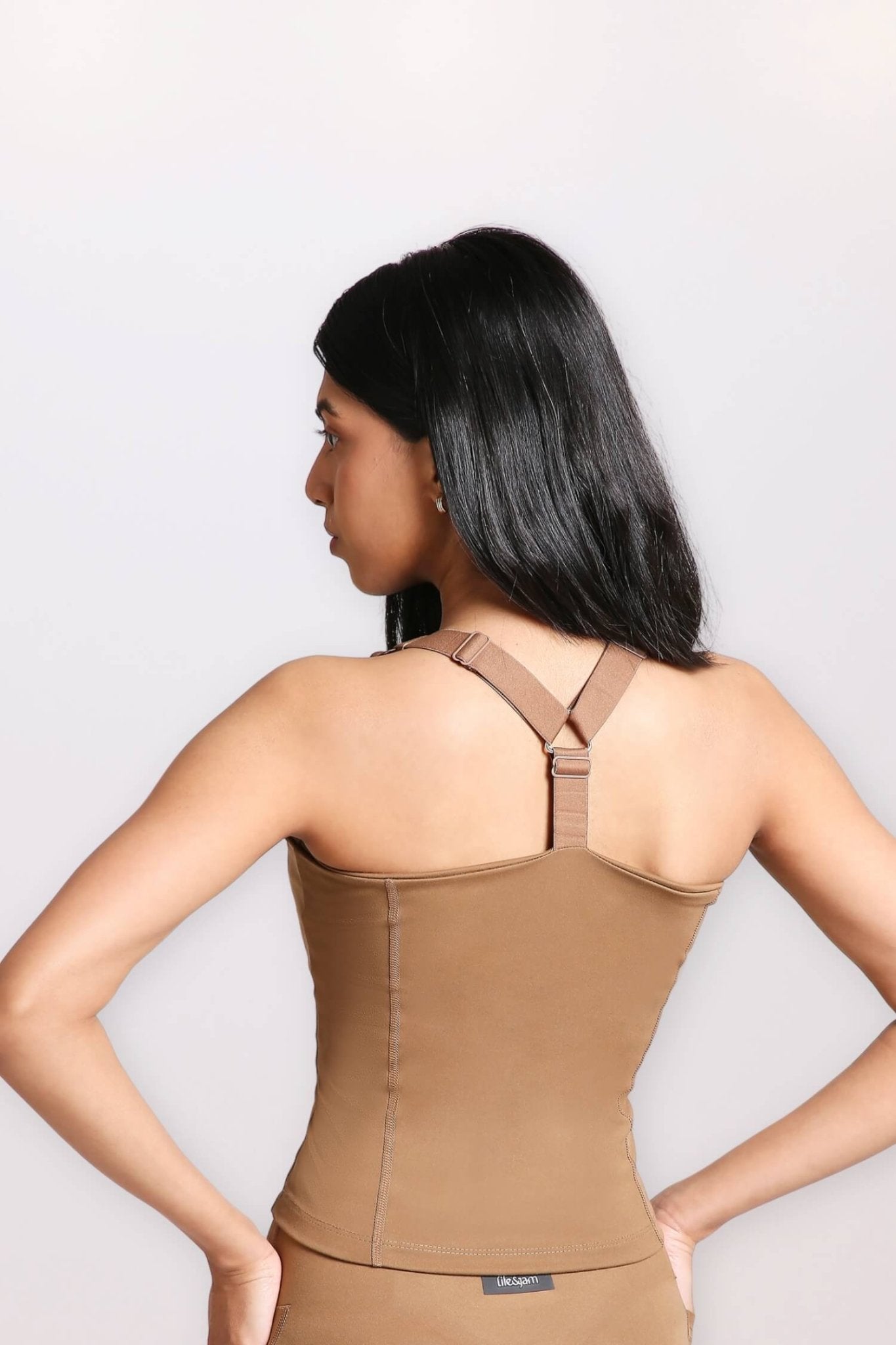 Good Girl Code Longline Sports Bra in Mountain Tan