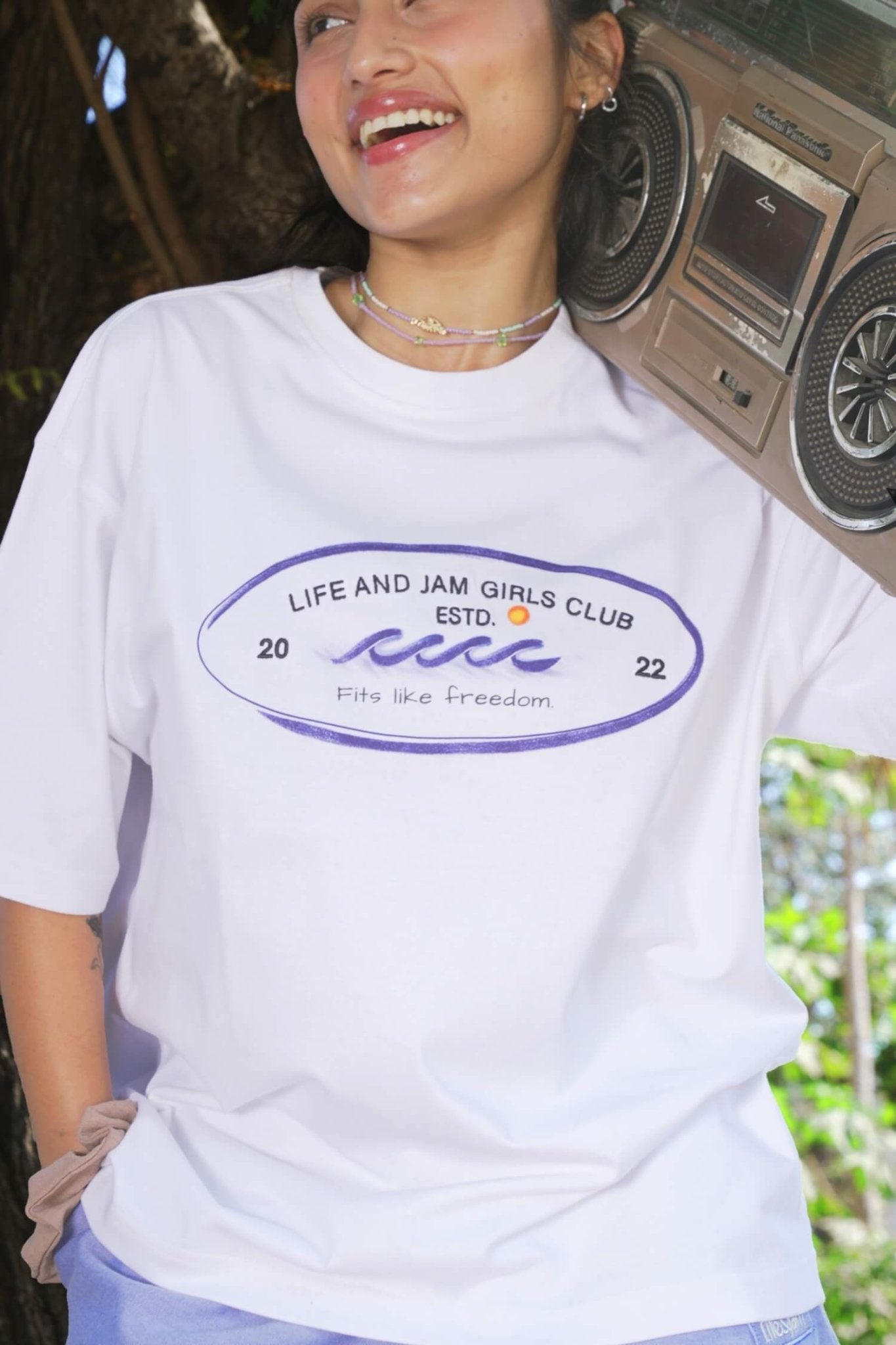 Why You Need This: It’s oversized. It’s comfy. It says you’re in the club - the one where we hype each other up, wear matching fits, and take hot girl walks even when we’re mildly spiraling. The Life & Jam Girls Club Tee is a reminder: you're not alone, and you’re definitely not basic.