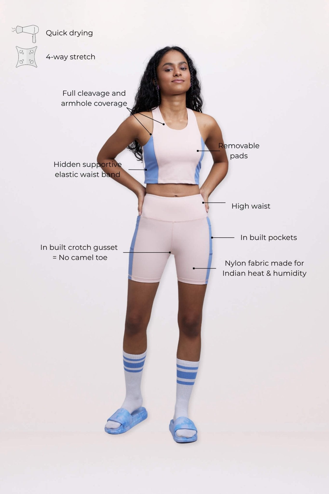 🍦Co-ord Set: Soft Girl Era Sports Bra + Shorts Set in Blush Pink