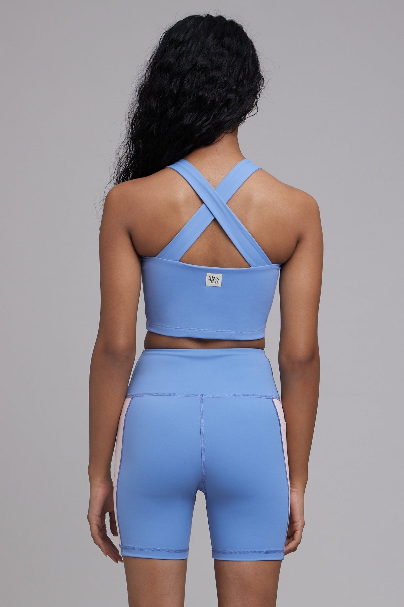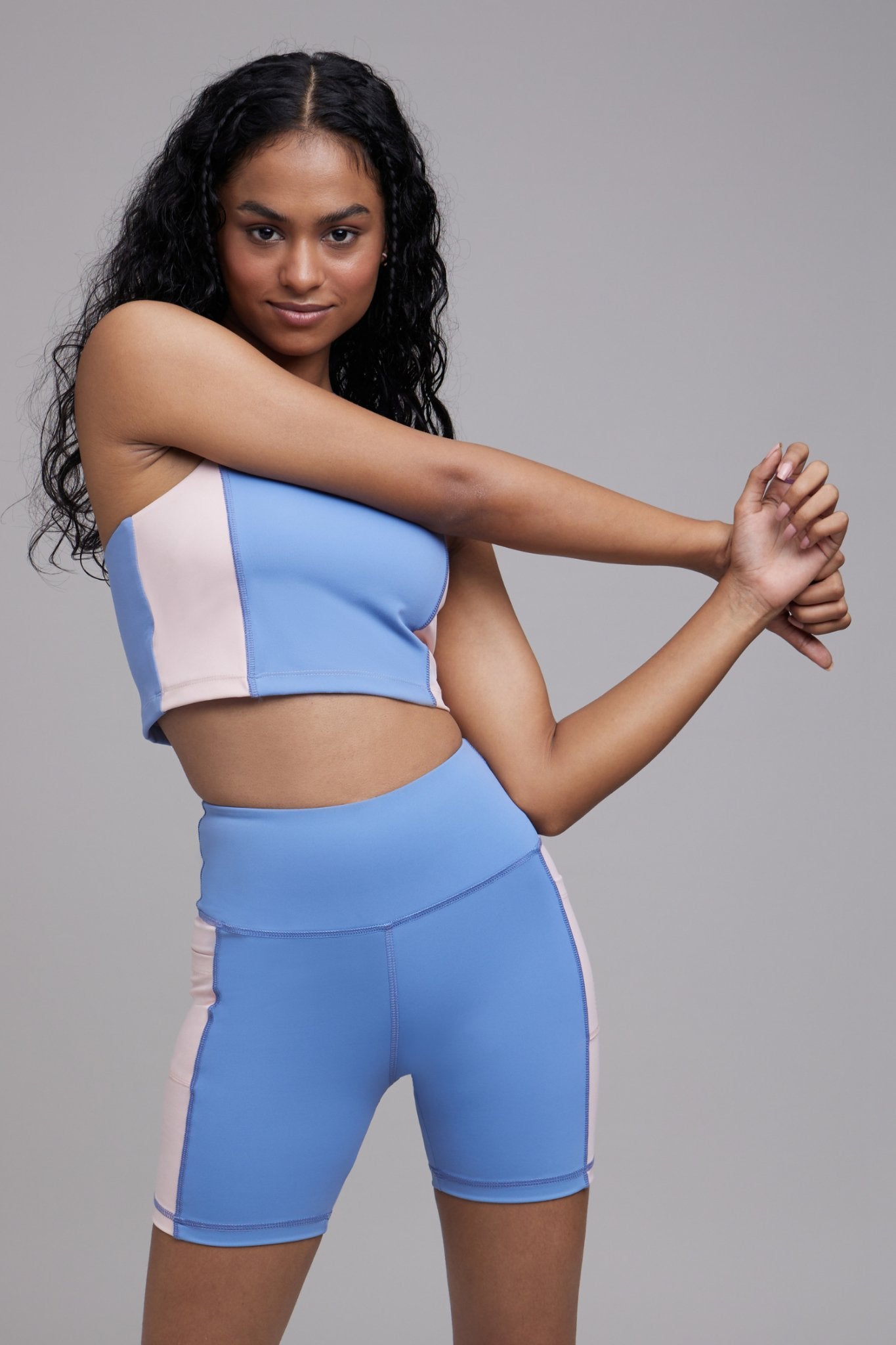 🍦Co-ord Set: Soft Girl Era Sports Bra + Shorts Set in Sunset Blue