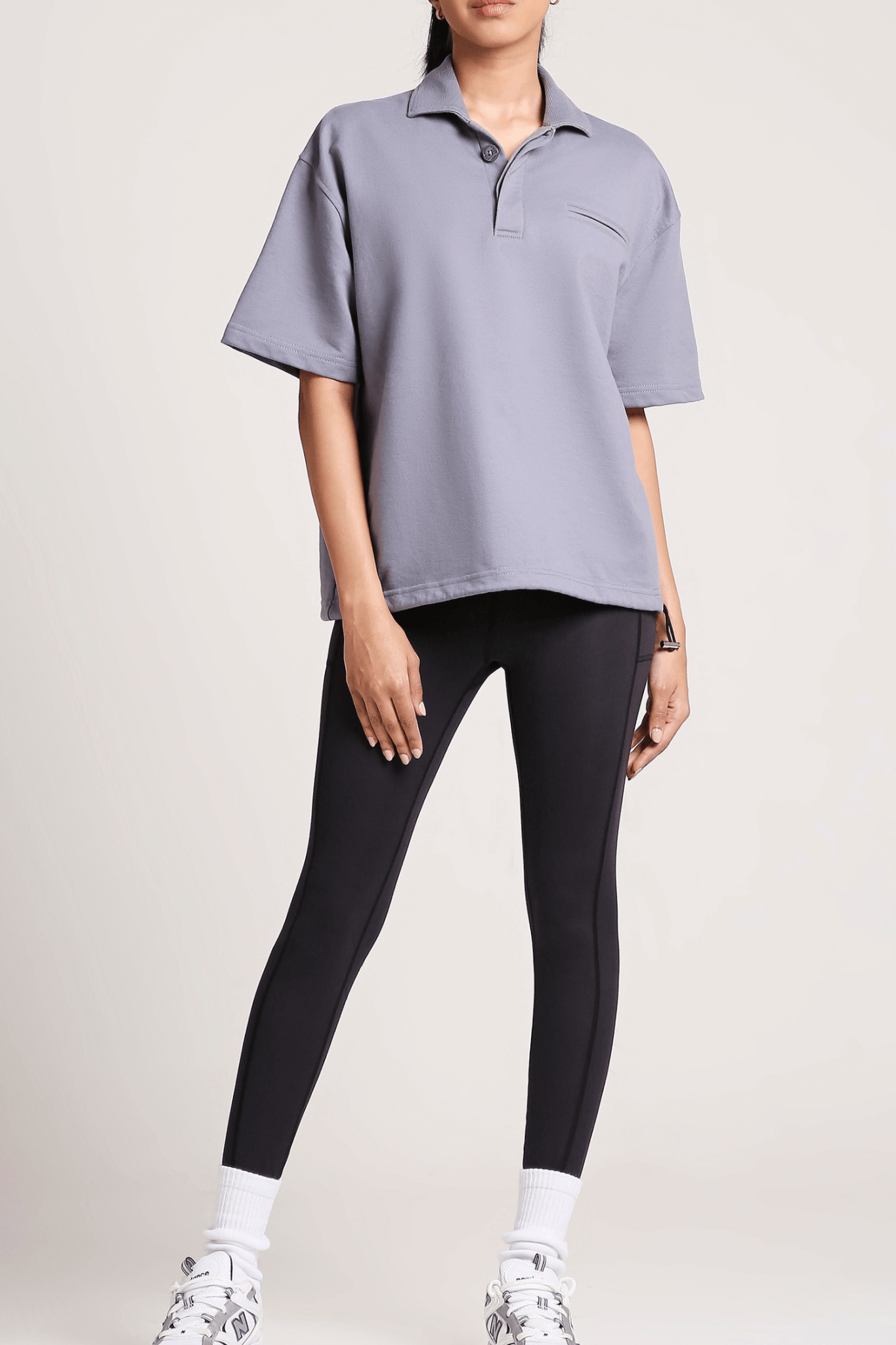 Styling Tip: Pair the Twilight Polo Tee with light-wash jeans or white pants, and cinch the waistband slightly for a flattering silhouette. Add sporty sneakers and some dainty jewelry for a laid-back yet refined vibe. For a more on-trend look, style it with high-waisted cargo pants and adjust the waistband for a chic, cropped effect.