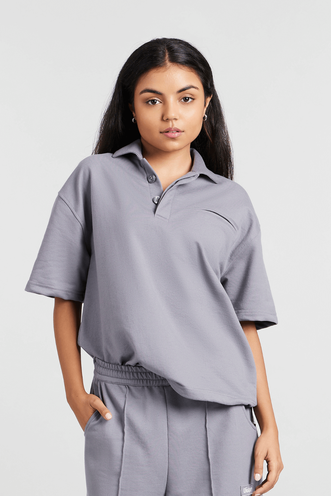 Boyfriend's Borrowed Polo Tee in Grey