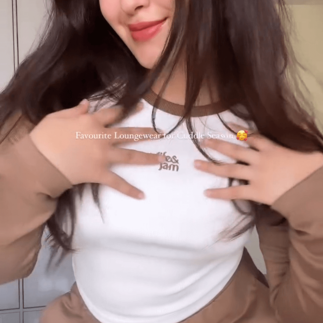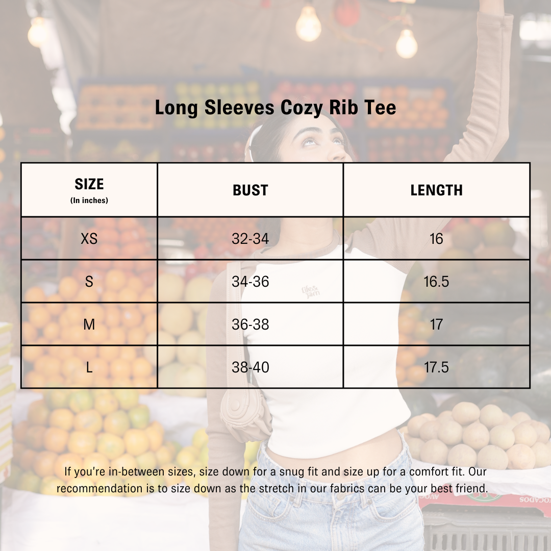 Long Sleeves Cozy Ribbed Tee in Tan & White