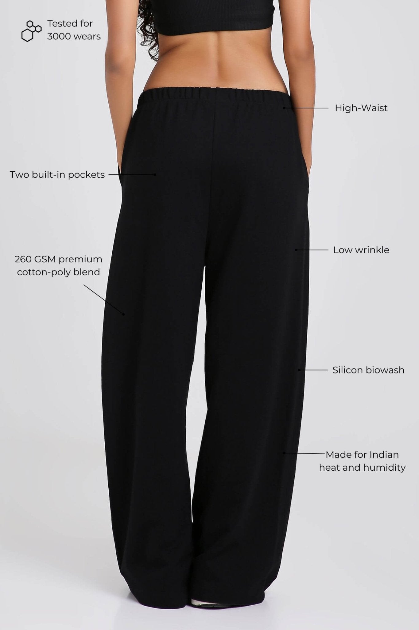Why you NEED this: These are pants you can live in. Relaxed, oversized fit. 260 GSM cotton-poly blend for breathability + shape retention. Tested for 3000 wears. They don’t cling, don’t wrinkle much, and look just as good at 9PM as they did at 9AM.