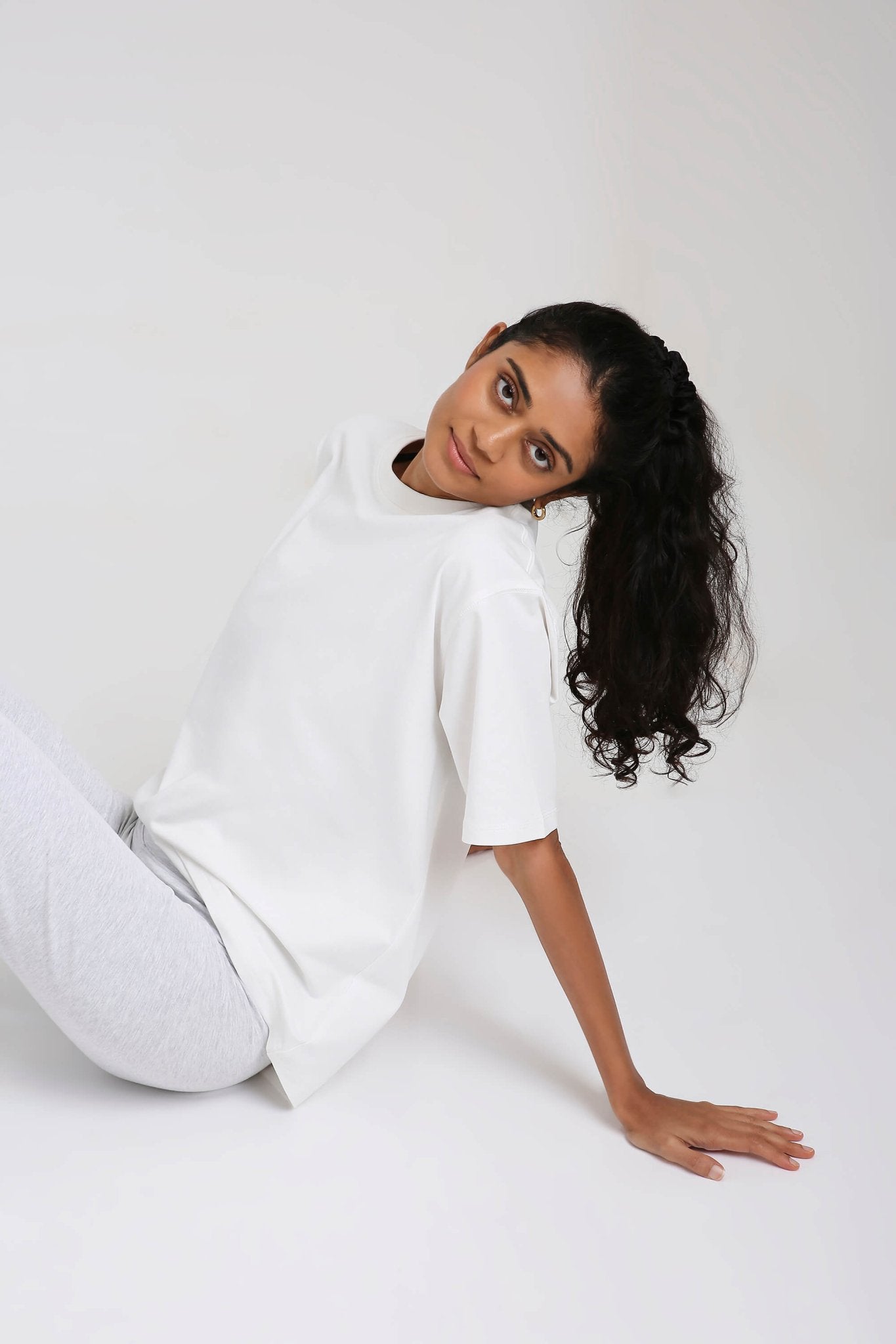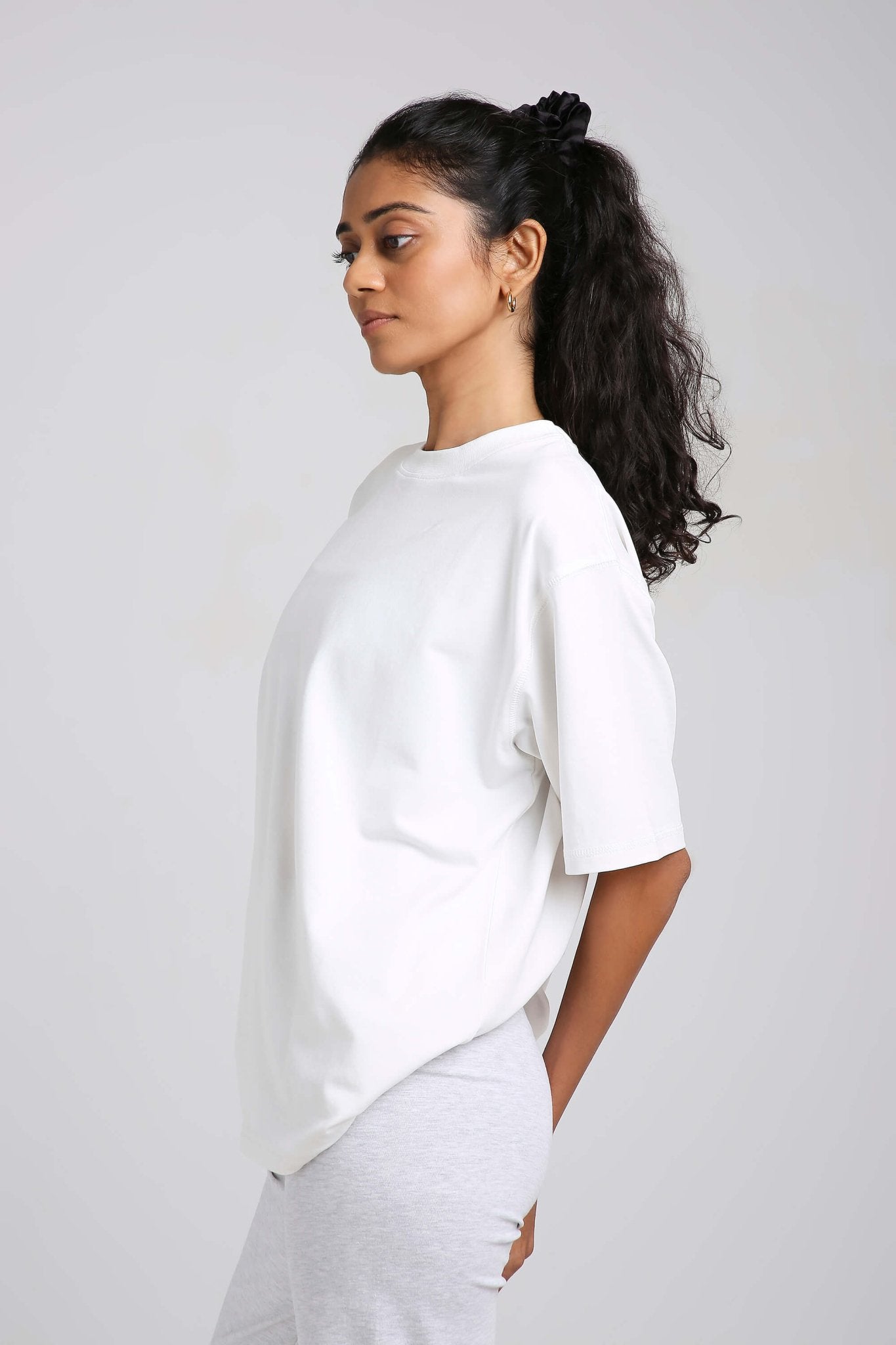 Styling tip: Half-tuck into high-waisted jeans for a clean streetwear vibe, knot at the waist over bike shorts for a workout-to-brunch fit, or wear loose with our Oversized Loungers for a monochrome moment.