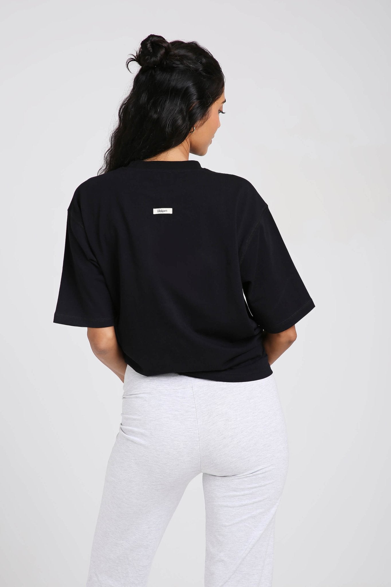 Styling tip: Half-tuck into high-waisted jeans for a clean streetwear vibe, knot at the waist over bike shorts for a workout-to-brunch fit, or wear loose with our Oversized Loungers for a monochrome moment.