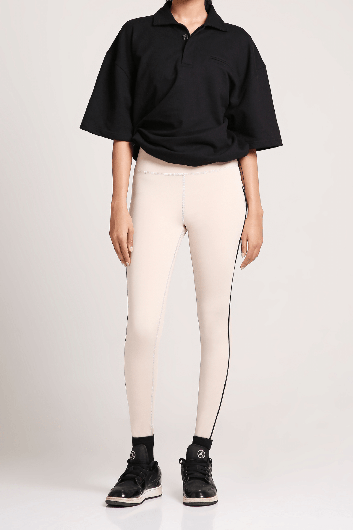 The Hybrid Polo Tee features a bottom metal adjuster at the waistband, allowing you to cinch the tee for a cropped, fitted look or loosen it for a relaxed, casual fit. It’s versatile and customizable for different styling preferences.
